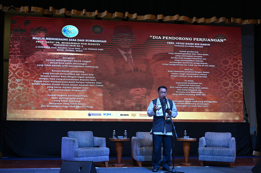 BANGI, 11 Disember 2025 – Institut Kefahaman Islam Malaysia (IKIM) menganjurkan Majlis Mengenang Jasa dan Sumbangan Almarhum Prof. Dato’ Dr. Muhammad Nur Manuty, Pengerusi IKIM yang kelima, dalam satu majlis penuh penghormatan yang berlangsung di Hotel Tenera, Bangi pagi ini. Program bermula dari jam 9.00 pagi hingga 1.00 tengah hari itu disertai pelbagai tokoh akademik, pemimpin masyarakat serta sahabat-sahabat seperjuangan beliau dari pelbagai generasi.