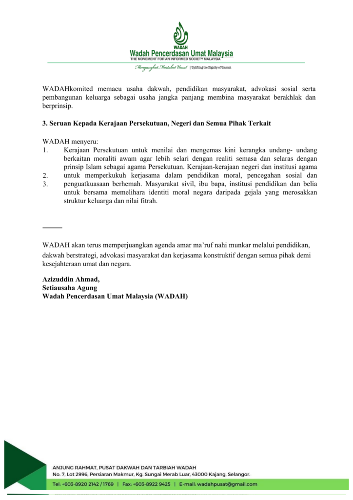 WADAH menekankan bahawa:
